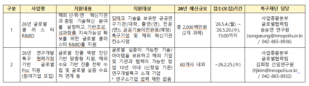 (연구개발특구진흥재단) 2026년 글로벌 지원사업 공고 안내