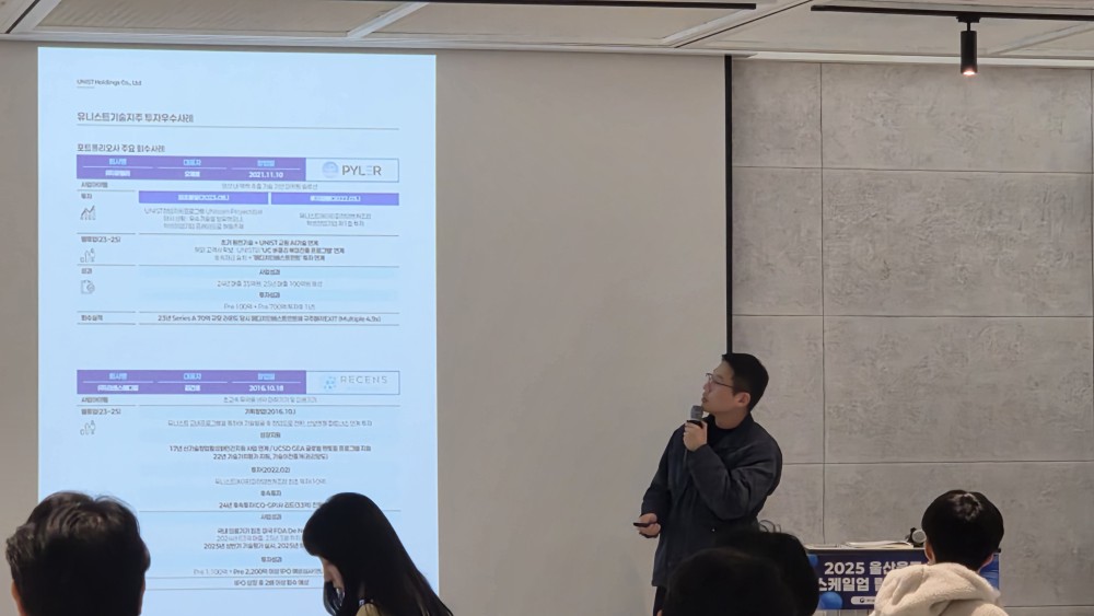 2025년 울산울주 강소특구 딥테크 스케일업 릴레이 투자로드쇼(25.11.12.) 2025.11.12 2025년 울산울주 강소특구 딥테크 스케일업 릴레이 투자로드쇼 일시: 2025.11.12.(수) 장소: 울산과학기술원 산학협력관(251동) 1층 107호 마켓홀